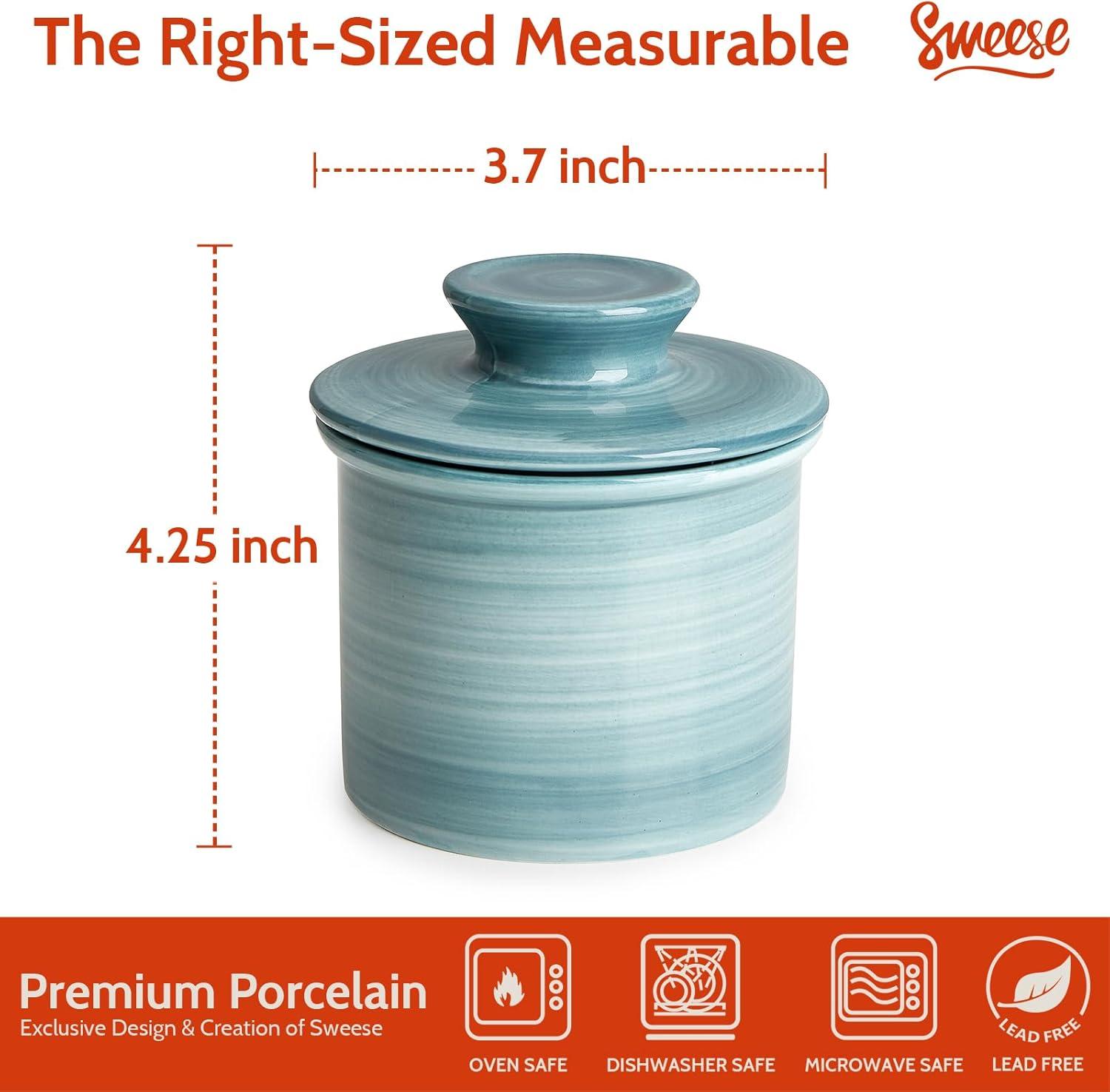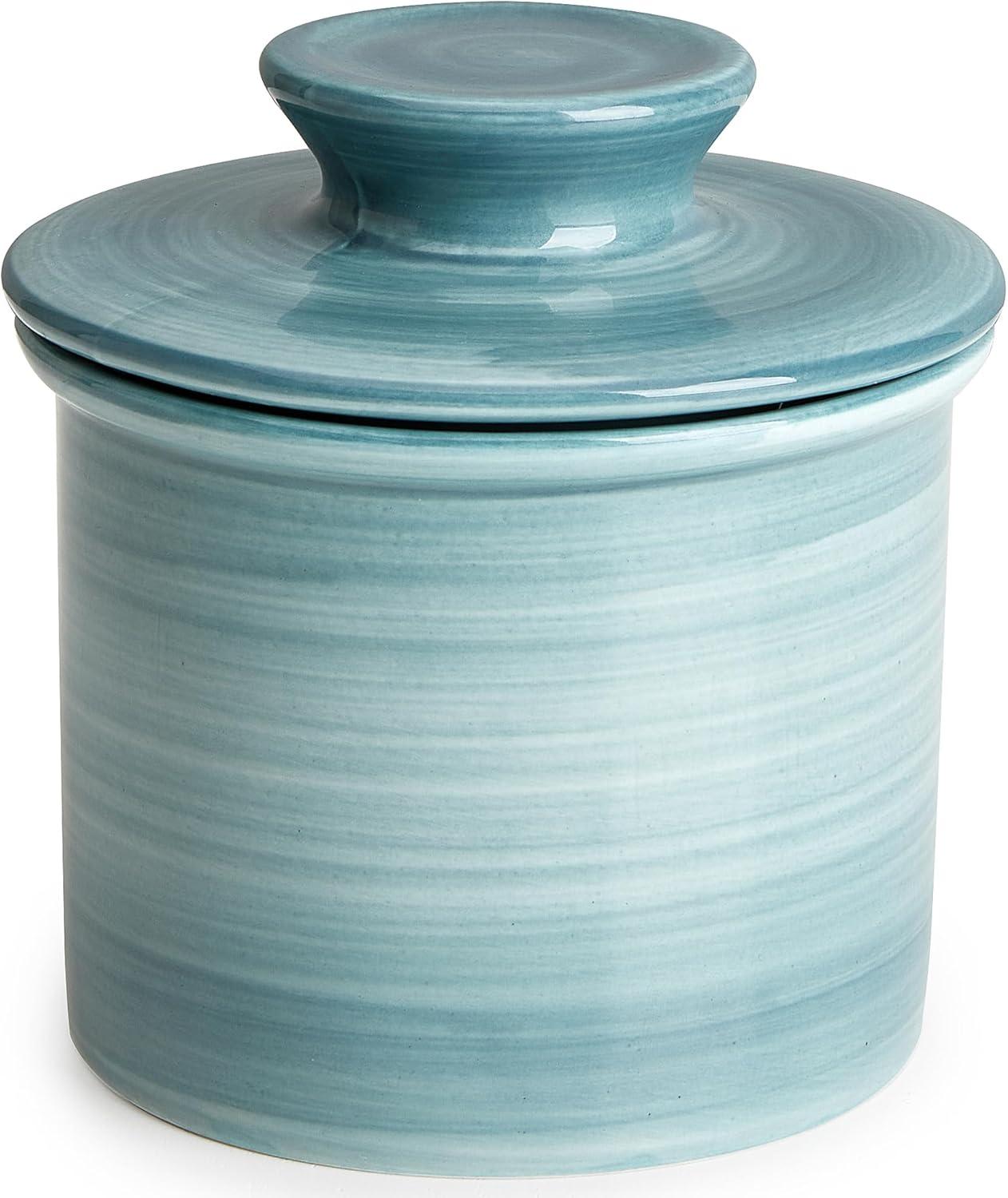 Sweese Hand-Painted Butter Crock with Water – French Butter Keeper Crock with Lid for Countertop, Artistic Design, Dishwasher & Microwave Safe, Gift-Ready-Light Grey(Dark Blue)